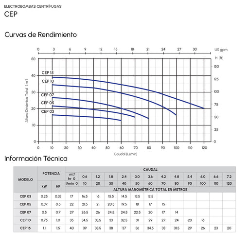 Ver todos los detallesBomba de Agua Centrífuga Serie CEP de 0.5 a 1.5 Hp, Pearl Descargar Ficha Técnica Especificaciones: Caudal Max.: 100 a 120 Lpm Altura Máxima: 35 ...