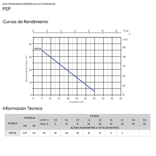 Bomba de Agua Periférica Serie PEP de 0,5 Hp, Pearl Descargar Ficha Técnica Especificaciones: Caudal Máx.: 40 Lpm Altura Máxima: 40 M Potencia:...